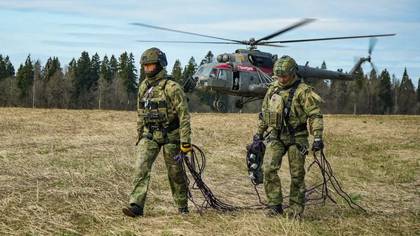 Бойцы специального отряда быстрого реагирования (СОБР) «Столица» и отряда мобильного особого назначения (ОМОН) «Авангард» Главного управления Росгвардии по Москве на учебно-тренировочных сборах по десантной подготовке отработали приемы беспарашютного десантирования из вертолета Ми-8.