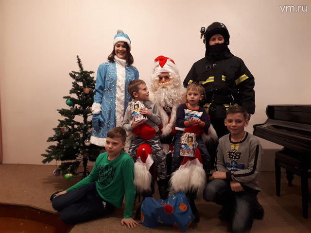 Дедушка Мороз и Снегурочка вместе с пожарными 29-го пожарно-спасательного отряда приехали поздравить ребят из детского дома «Павлина» с Новогодними праздниками  Дедушка Мороз и Снегурочка вместе с пожарными 29-го пожарно-спасательного отряда приехали поздравить ребят из детского дома «Павлина» с Новогодними праздниками / Фото: Андрей Объедков, «Вечерняя Москва»