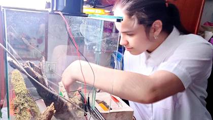 Одиннадцатиклассница школы № 2065 Елизавета Кузнецова создала IT-террариум. Изобретение уникально тем, что оно самостоятельно поддерживает нужный для рептилий климат.