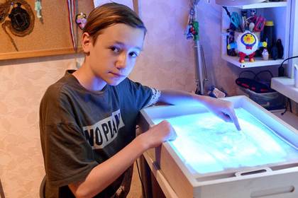 В этот раз мальчик решил попробовать новую технику. Он снял мультфильм, используя песочную анимацию.