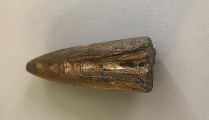 Но корреспонденту Михаилу Савкину повезло с находкой больше всех. Он разглядел на берегу диковинный камень, похожий на наконечник стрелы. При ближайшем рассмотрении замысловатый предмет оказался окаменелостью белемнита — вымершего моллюска, который жил в юрском и меловом периодах.