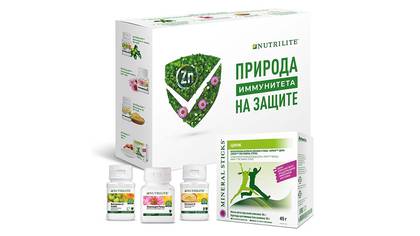 Набор «Природа на защите иммунитета» состоит из четырех биологически активных добавок, изготовленных преимущественно из натуральных ингредиентов: комплексов «NUTRILITE™ Витамин С плюс», «NUTRILITE™ Витамин D», «NUTRILITE™ Эхинацея плюс» и нового продукта — «AMWAY™ Цинк».