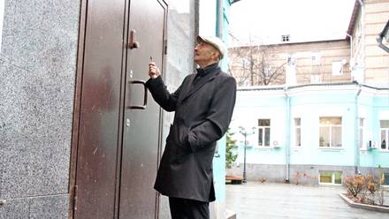Художник Марлен Чтчян стоит у двери особняка по адресу: Малый Харитоньевский переулок, 10, где раньше была его мастерская. В руках у Марлена Григорьевича ключ, который теперь эту дверь не откроет. Здание продано за 6000 рублей / Фото: Екатерина Алексеева / Вечерняя Москва
