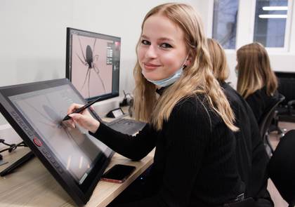 Школьница Дарья Дроздова на занятии по дизайну в новом столичном детском технопарке «Косыгин-парк» учится создавать рисунки для оформления одежды с помощью специальных цифровых планшетов / Фото: Екатерина Алексеева / Вечерняя Москва