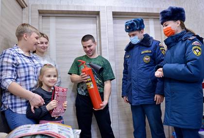 Сотрудники Управления МЧС Южного административного округа провели социальную акцию «Нет пожара в доме» специально для многодетных семей и подарили им необходимые для каждого дома приборы — огнетушители и пожарные полотна.