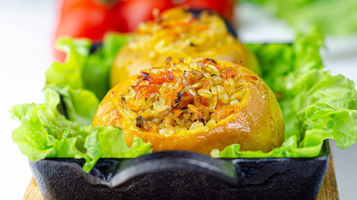 Удалите из репы мякоть, нарежьте ее и смешайте с рисом и овощами. Этой смесью начините репу, полейте немного оливковым маслом и уложите в жаропрочную форму. Отправьте в духовку, разогретую до 180 градусов, и выпекайте минут 10–12. Подавать можно с зеленью. Кстати, если во время приготовления вы добавите немного зиры, будет еще вкуснее!