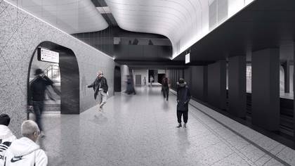 По его словам, облицовывают отделочники и переходы между платформами. Там, помимо гранита, используется также мрамор. Этот материал выбрали и для оформления кассового зала станции.