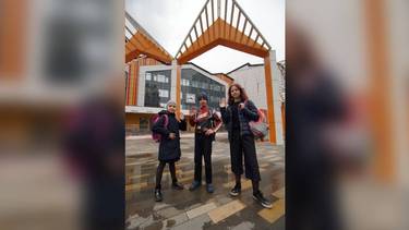 Среди первых учеников, которые сели за парты новой школы — Саша, Даша и Катя Лукины. Ребята поделились своими впечатлениями об учебе в школе-гиганте.