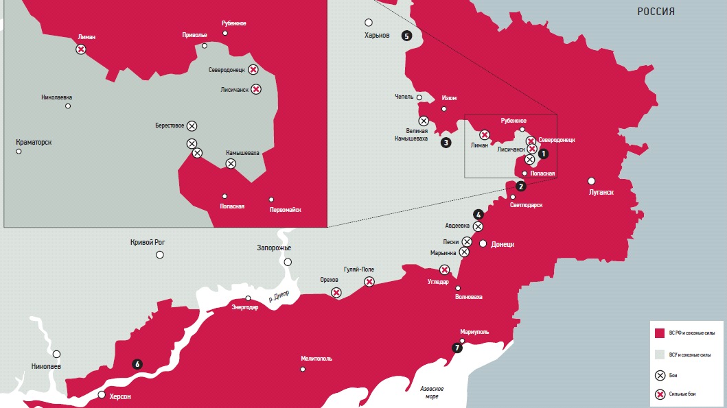 — Российские войска и союзники берут части ВСУ в полуокружения, а потом постоянно «утюжат» их артиллерийским огнем и ударами авиации — пока украинцы сами не потеряют волю к сопротивлению. Помимо Северодонецка и Лисичанска, такой «полукотел» уже сформировался в районе Золотого и Горского, под Красным Лиманом. Дела у ВСУ плохи.