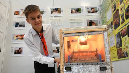 Другой яркой разработкой стал проект ученика 6-го класса Дмитрия Спивакова из Краснодарского края. Он придумал, как сконструировать рабочий инкубатор из подручных материалов с минимальными затратами.