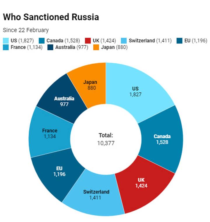 С начала спецоперации страны Запада и их союзники ввели свыше 10 тысяч антироссийских санкций: против политиков, компаний, спортсменов и поставок природных ресурсов.